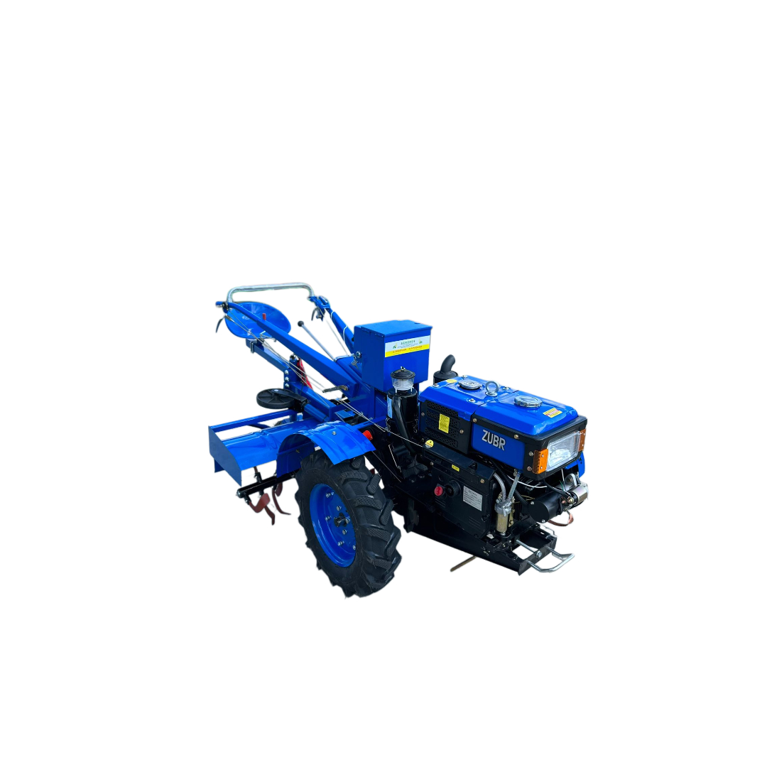 Motocultorul ZUBR 10 CP poate fi pornit atât folosind demarorul electric, cât și cu ajutorul demarorului manual. Pe unitate este instalată cutia de viteză universală. 6 viteze înainte și 2 viteze înapoi vă permit să lucrați cu orice atașamente sau remorci, la toate vitezele.